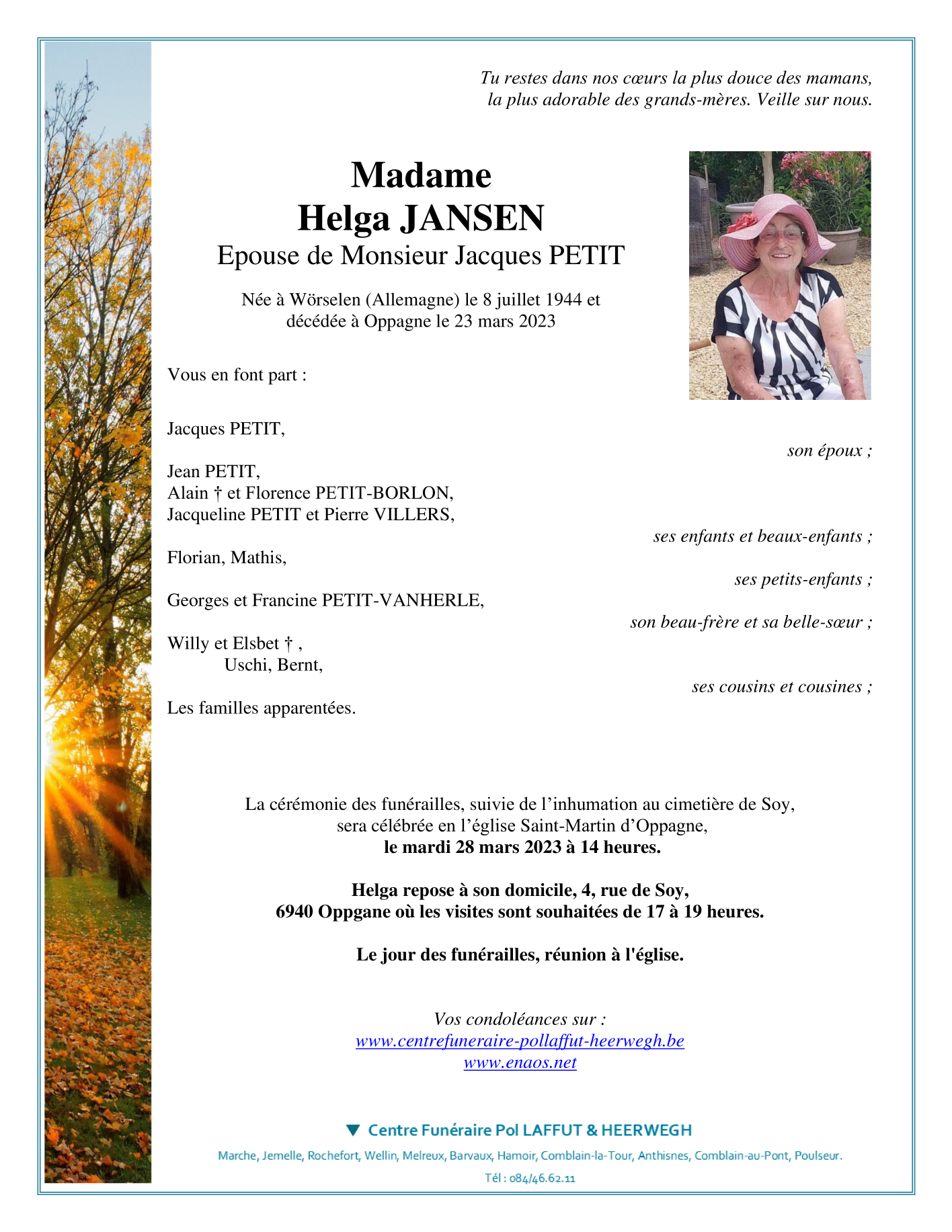 Fallecida en Oppagne (6940) el jueves, 23 de marzo de 2023 a la edad de 78 años