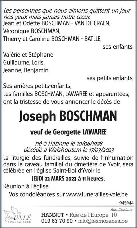 Décédé à Landen (3400) le vendredi 17 mars 2023 à l'âge de 94 ans