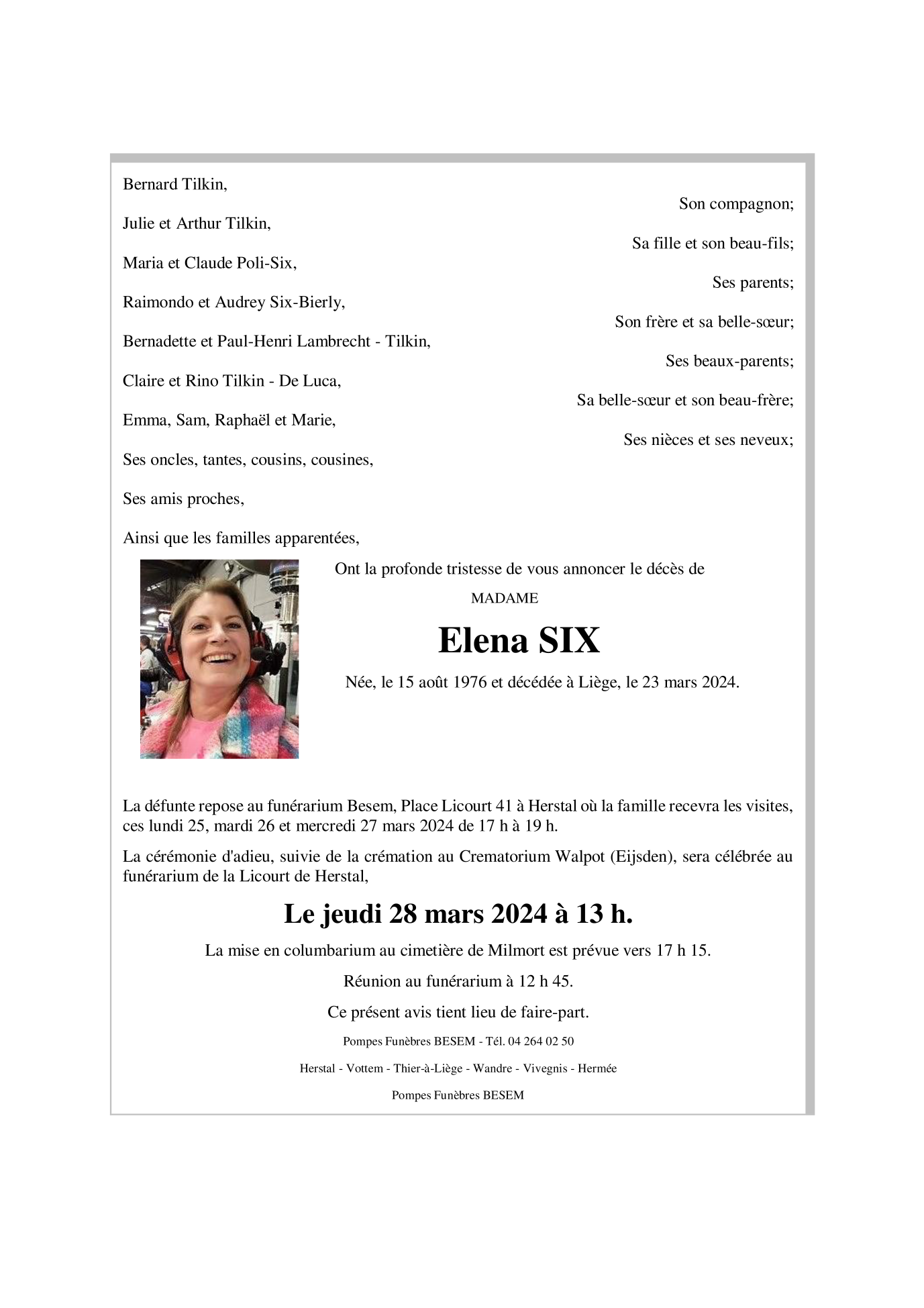 Décédée à Liège (4000) le samedi 23 mars 2024 à l'âge de 47 ans