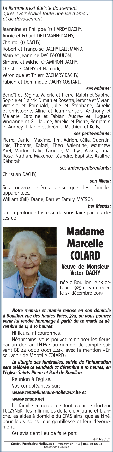 Died in Bouillon (6830) on 23 December 2019 at the age of 94 years