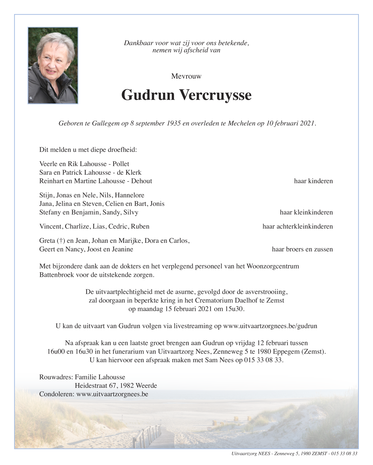 Overleden te Mechelen (2800) op woensdag 10 februari 2021 op 85-jarige leeftijd