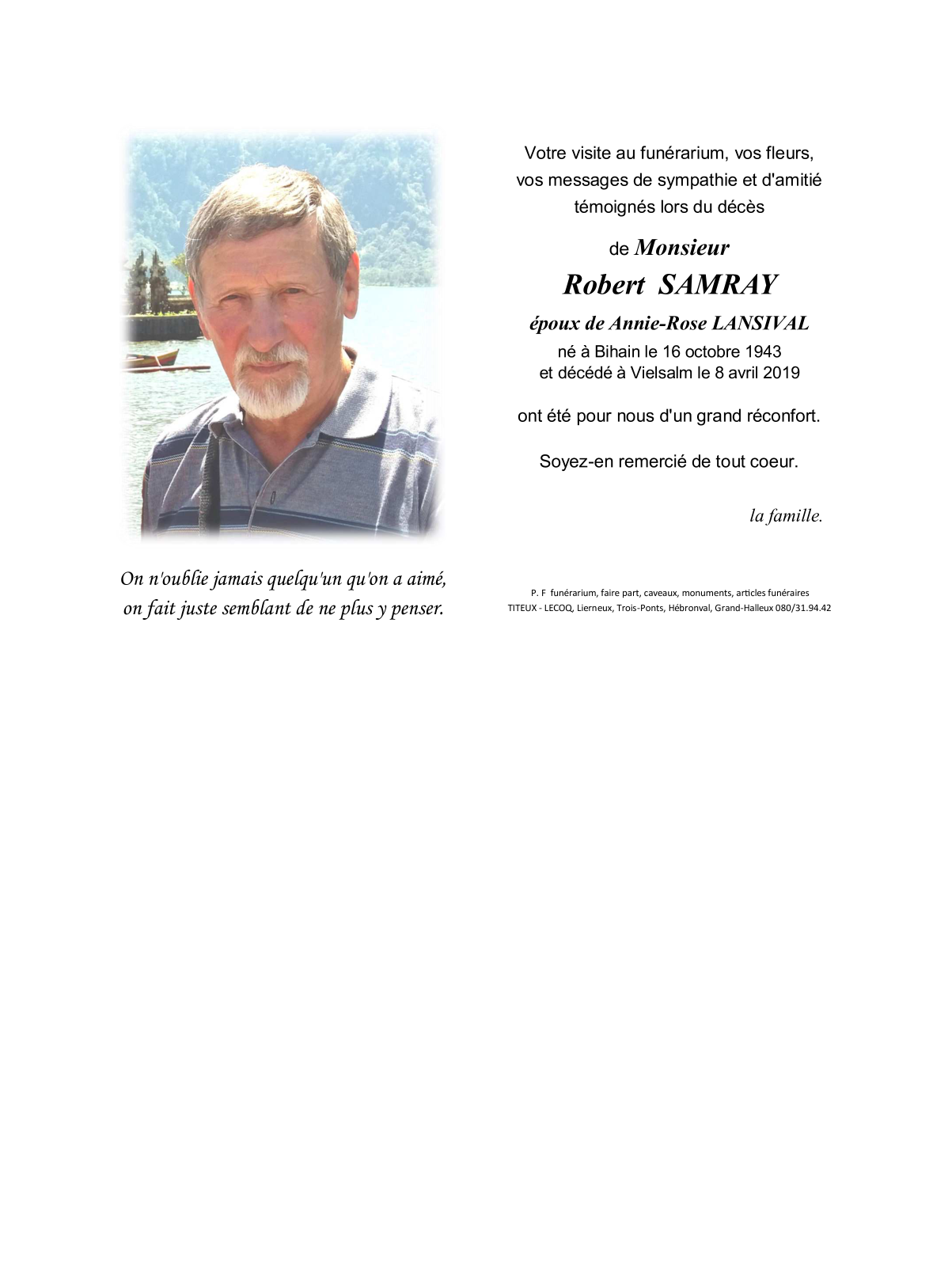 Overleden te Vielsalm (6690) op maandag 8 april 2019 op 75-jarige leeftijd