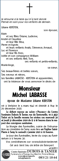 Décédé à Huy (4500) le mardi 29 décembre 2020 à l'âge de 78 ans