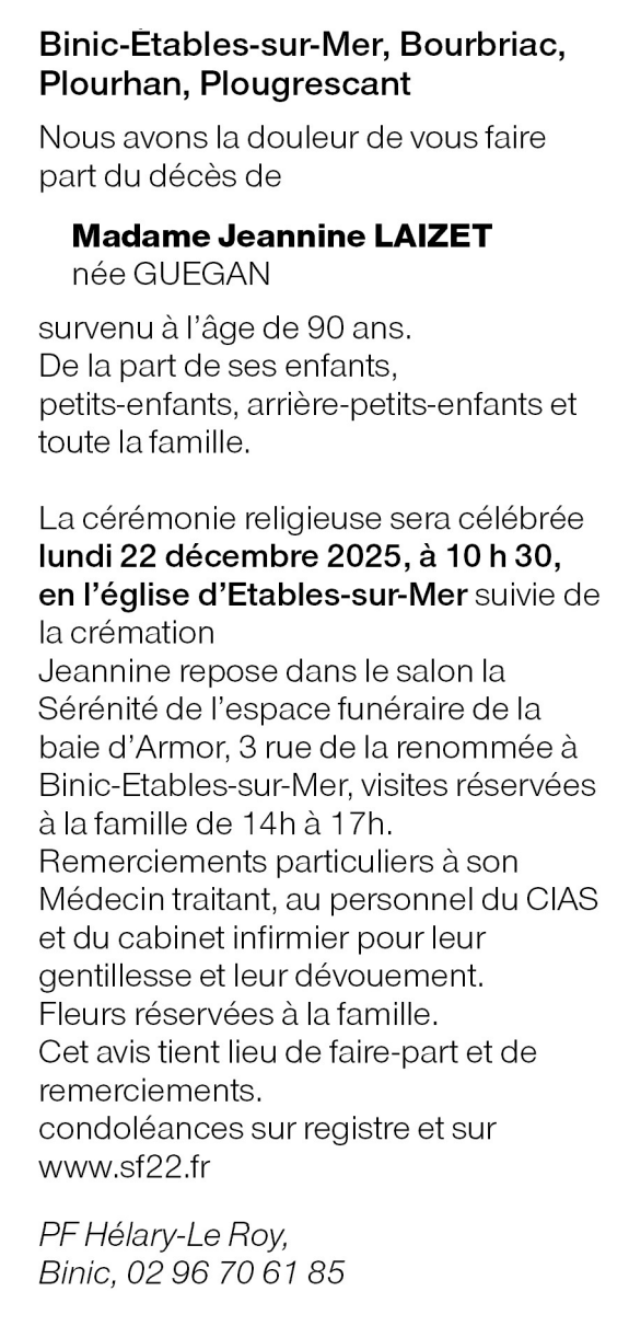 Madame Jeannine LAIZET geboren GUEGAN