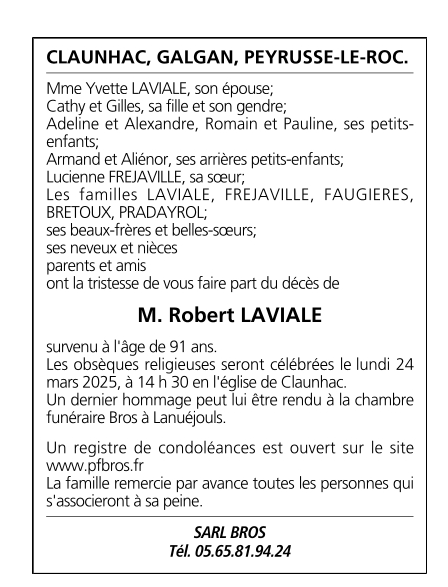 Décédé à Montbazens (12220, France) le jeudi 20 mars 2025 à l'âge de 91 ans