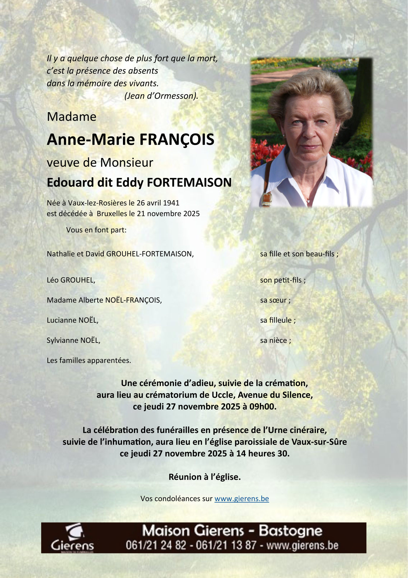 Overleden te Bruxelles (1000) op vrijdag 21 november 2025 op 84-jarige leeftijd