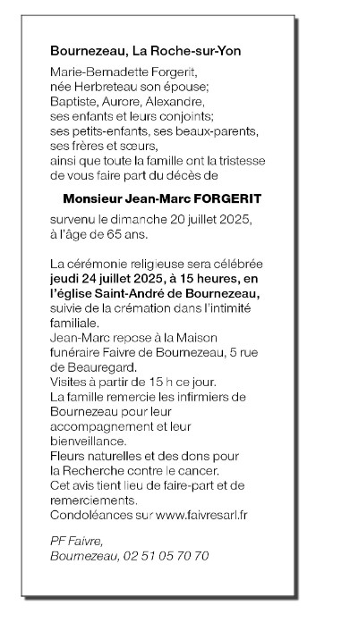 Echtgenoot van Madame Marie-Bernadette FORGERIT