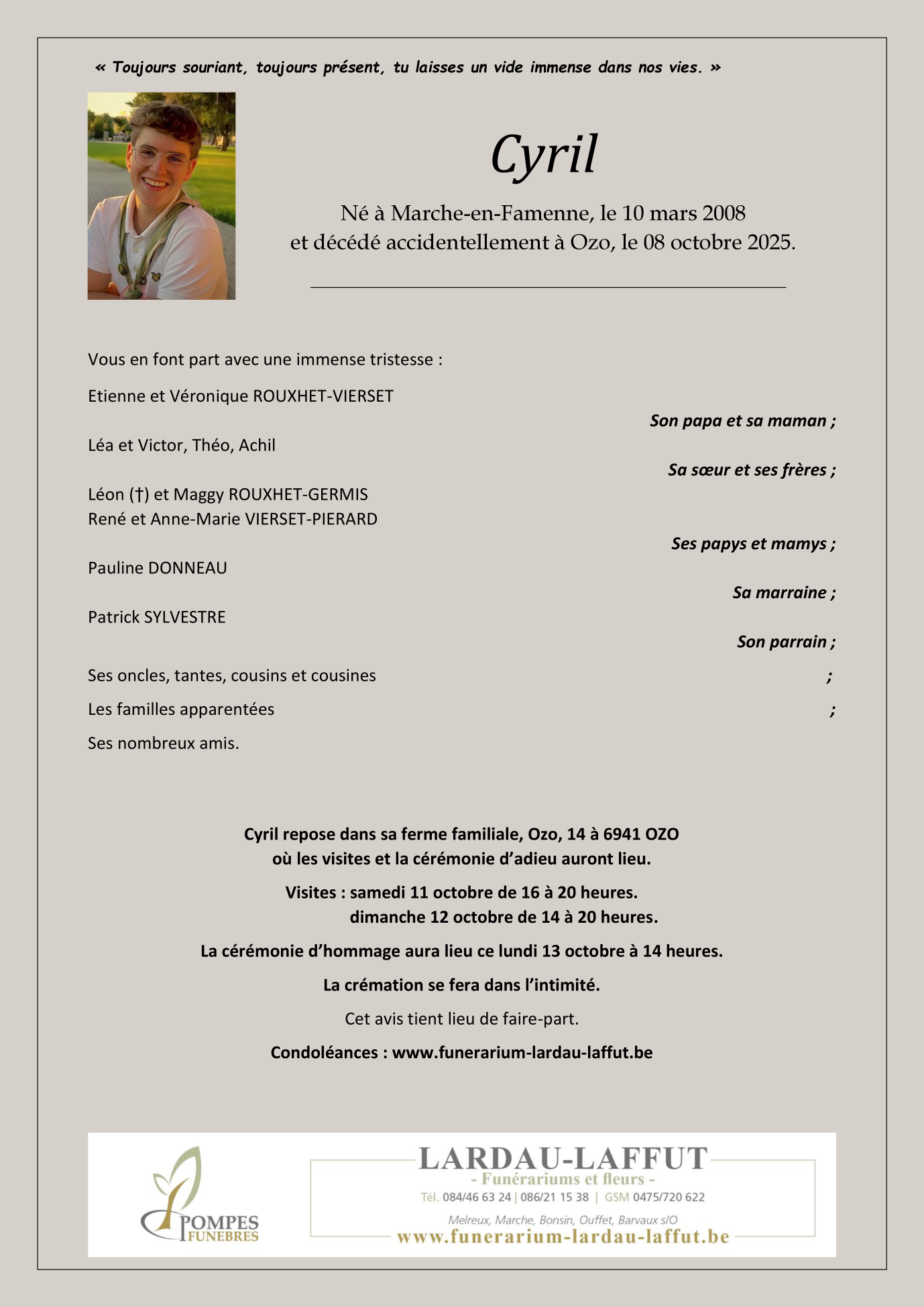 Died in Ozo (6941) on 08 October 2025 at the age of 17 years