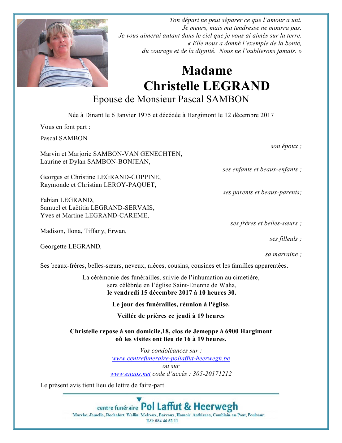 Died in Hargimont (6900) on 12 December 2017 at the age of 42 years
