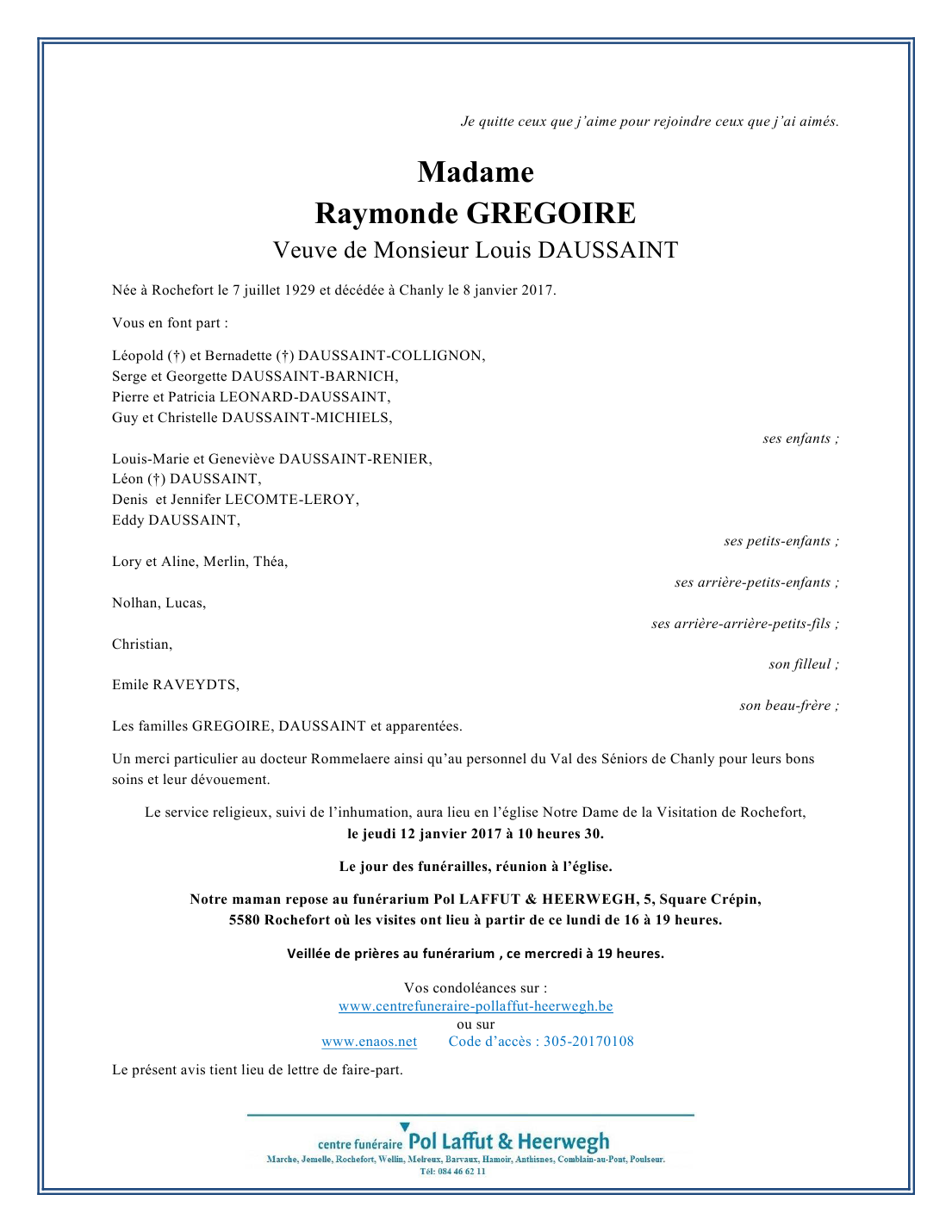Overleden te Chanly (6921) op zondag 8 januari 2017 op 87-jarige leeftijd