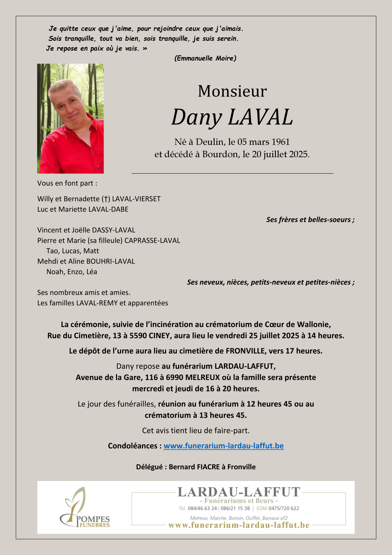 Died in Bourdon (6990) on 20 July 2025 at the age of 64 years
