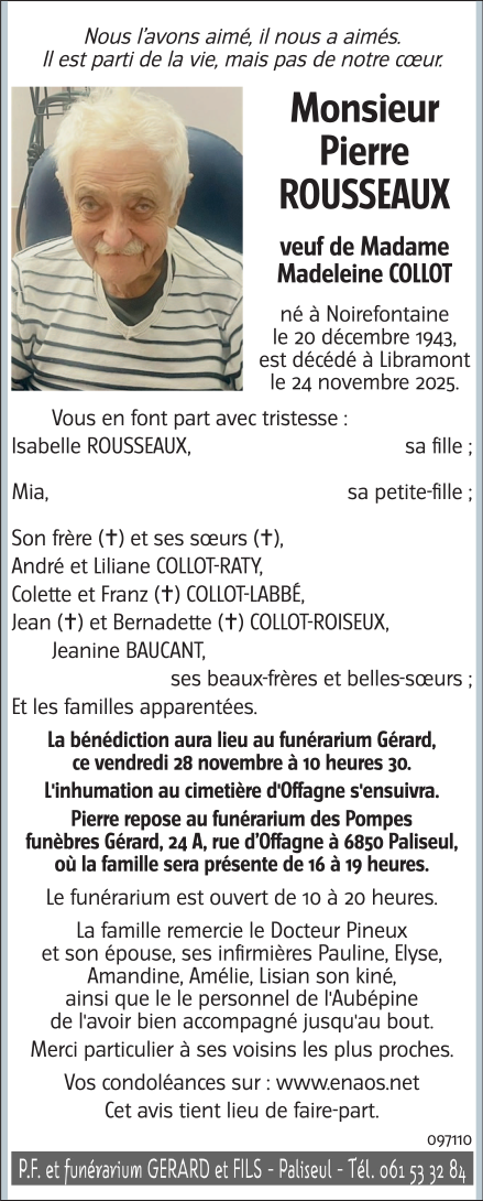 Décédé à Libramont (6800) le mardi 25 novembre 2025 à l'âge de 81 ans