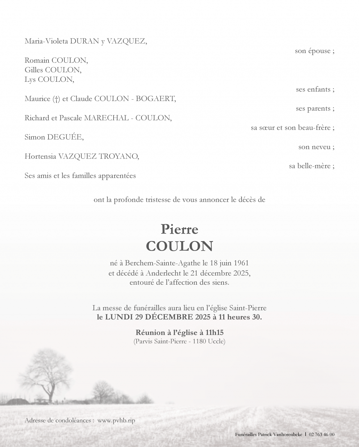Décédé à Anderlecht (1070) le dimanche 21 décembre 2025 à l'âge de 64 ans