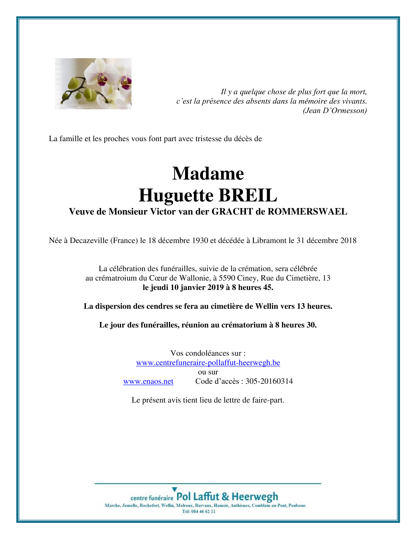 Died in Libramont (6800) on 31 December 2018 at the age of 88 years