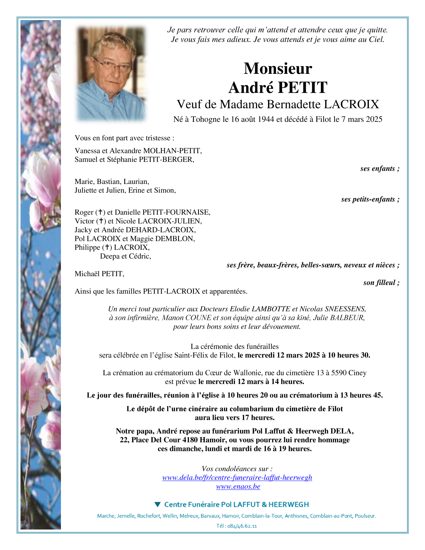 Born in Tohogne (6941) on 16 August 1944
