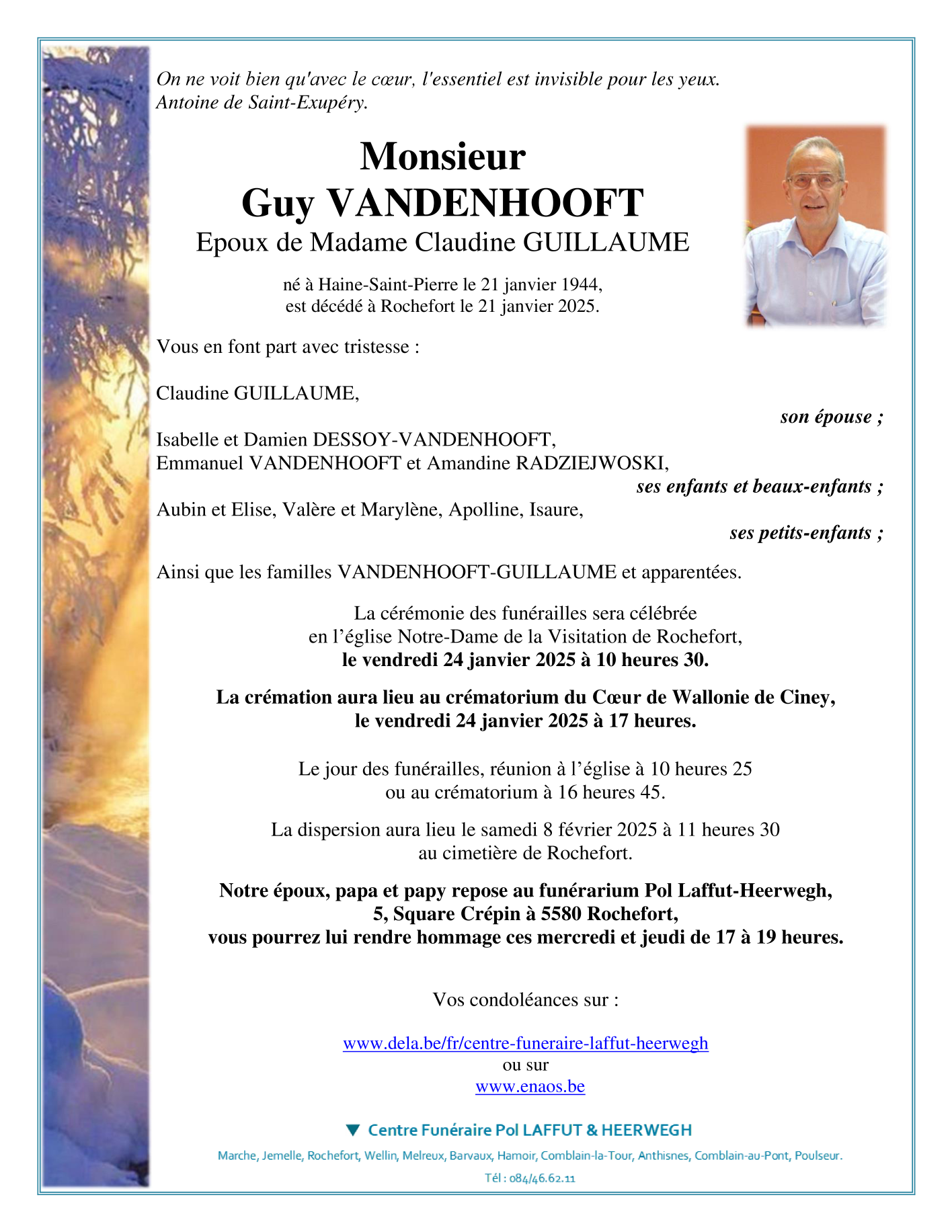 Died in Rochefort (5580) on 21 January 2025 at the age of 81 years