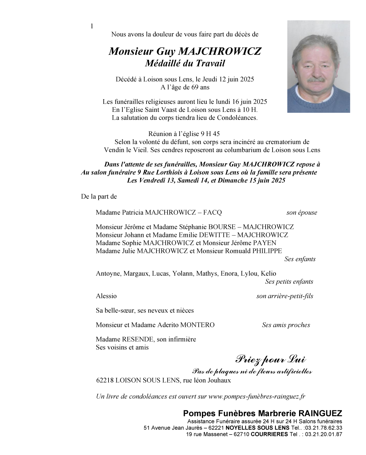 Décédé à Loison-sous-Lens (62218, France) le vendredi 13 juin 2025