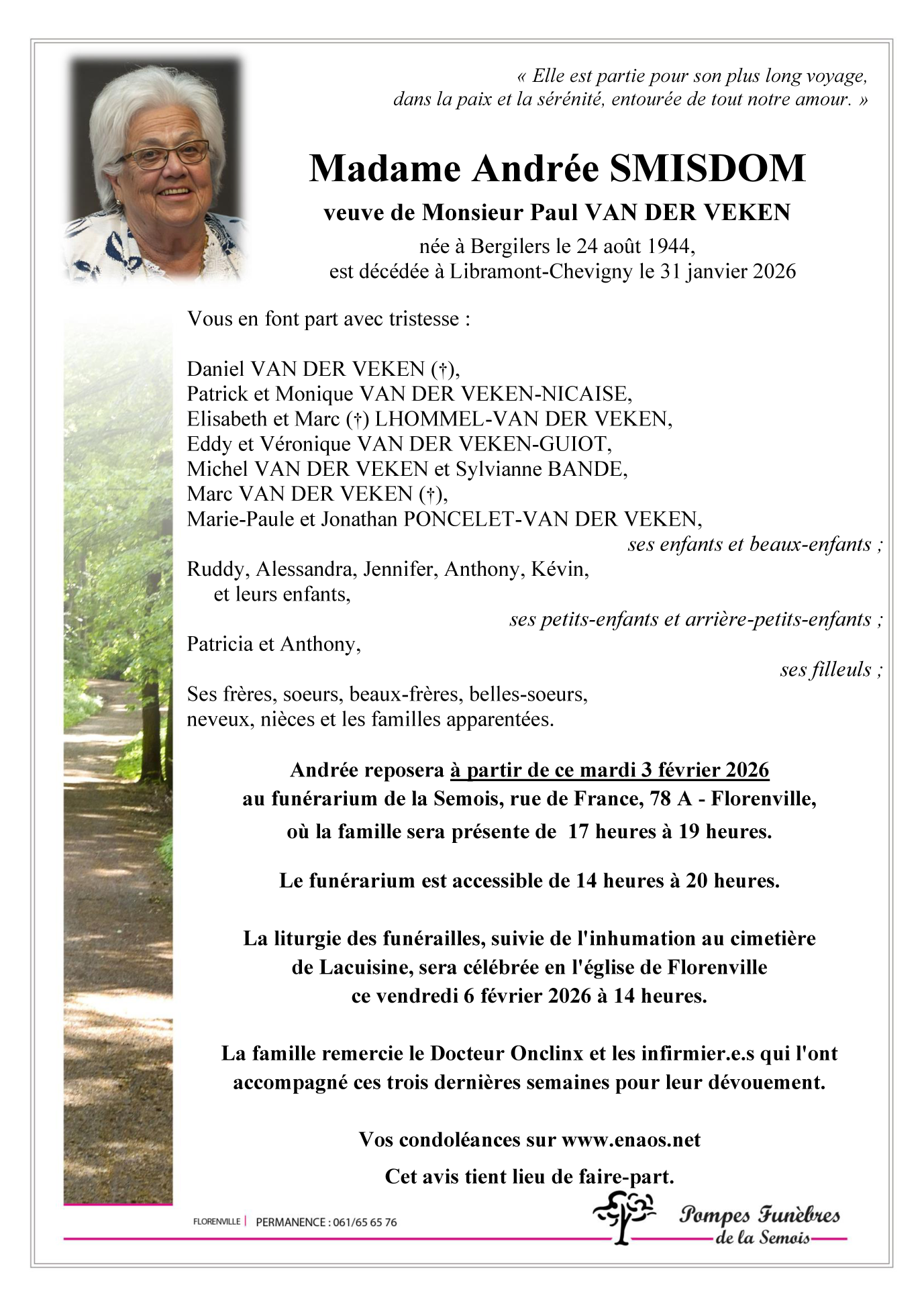 Overleden te Libramont-Chevigny (6800) op zaterdag 31 januari 2026 op 81-jarige leeftijd