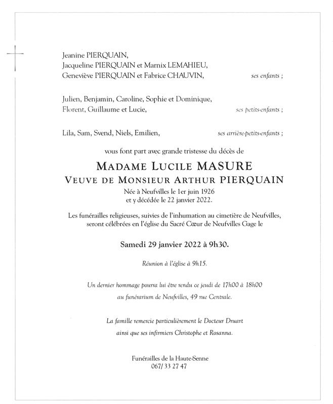 Died in Neufvilles (7063) on 22 January 2022 at the age of 95 years