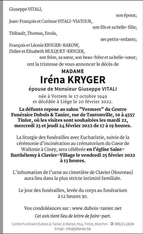 Madame Iréna KRYGER