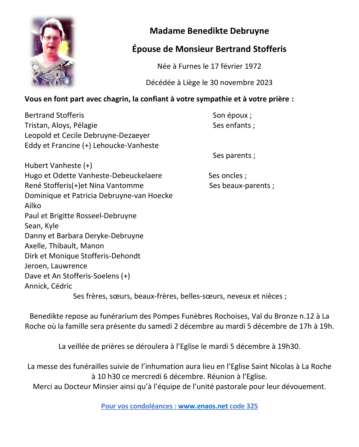 Died in Liège (4000) on 30 November 2023 at the age of 51 years
