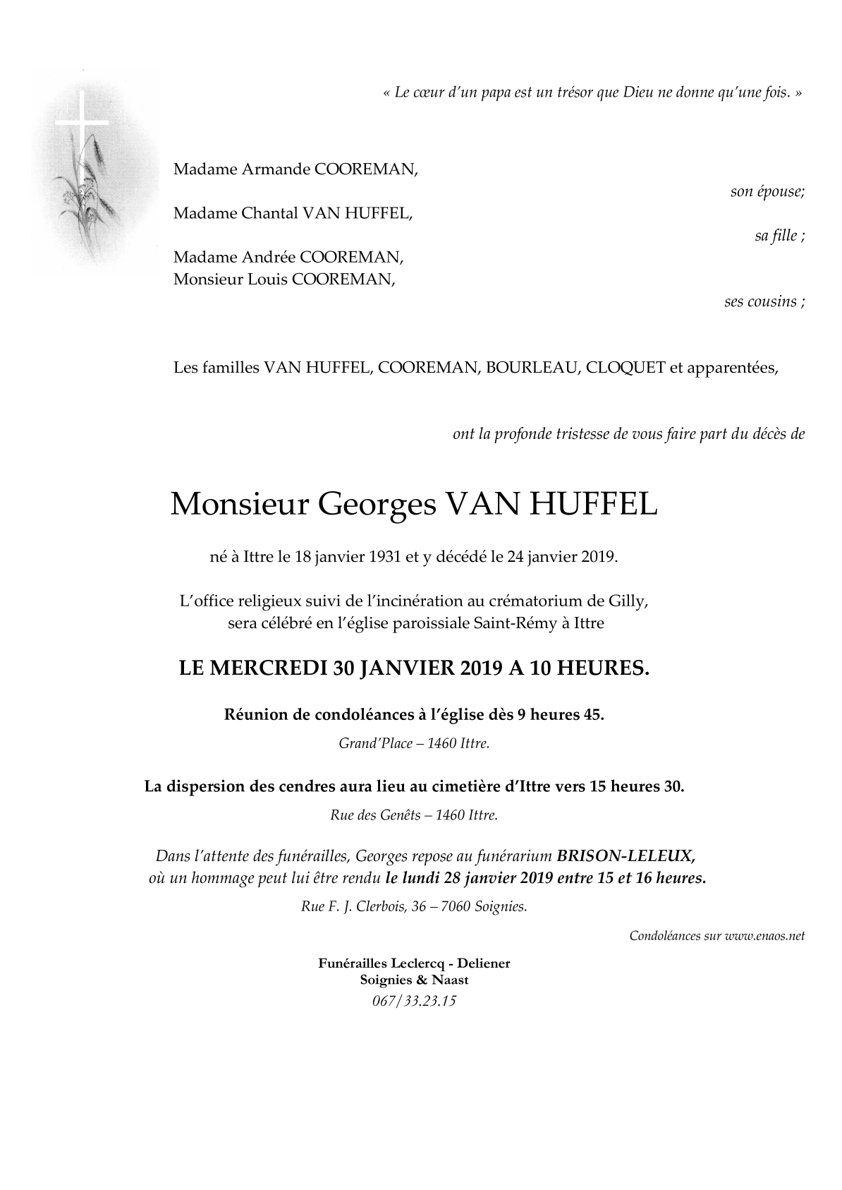 Décédé à Ittre (1460) le jeudi 24 janvier 2019 à l'âge de 88 ans
