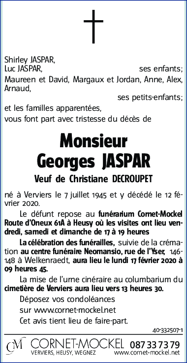 Décédé à Verviers (4800) le mercredi 12 février 2020 à l'âge de 74 ans