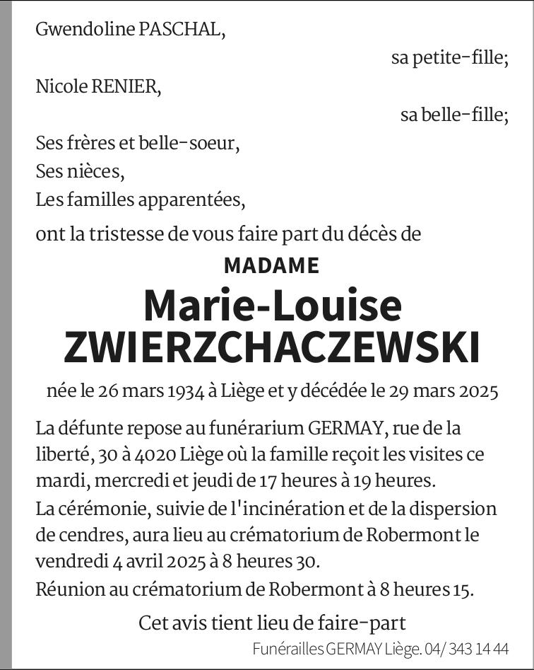 Madame Marie Louise ZWIERZCHACZEWSKI