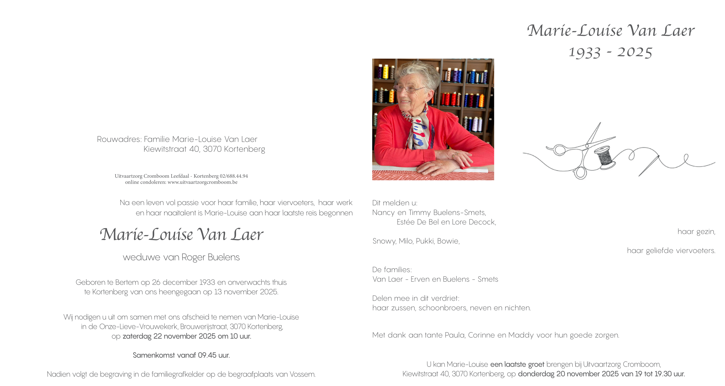 Décédée à Kortenberg (3070) le jeudi 13 novembre 2025 à l'âge de 91 ans