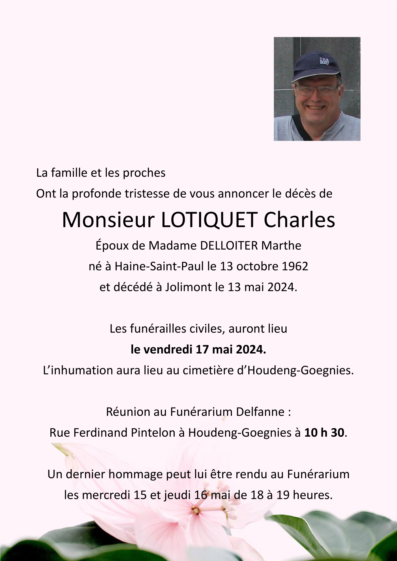 Décédé à Haine-Saint-Paul (7100) le lundi 13 mai 2024 à l'âge de 61 ans