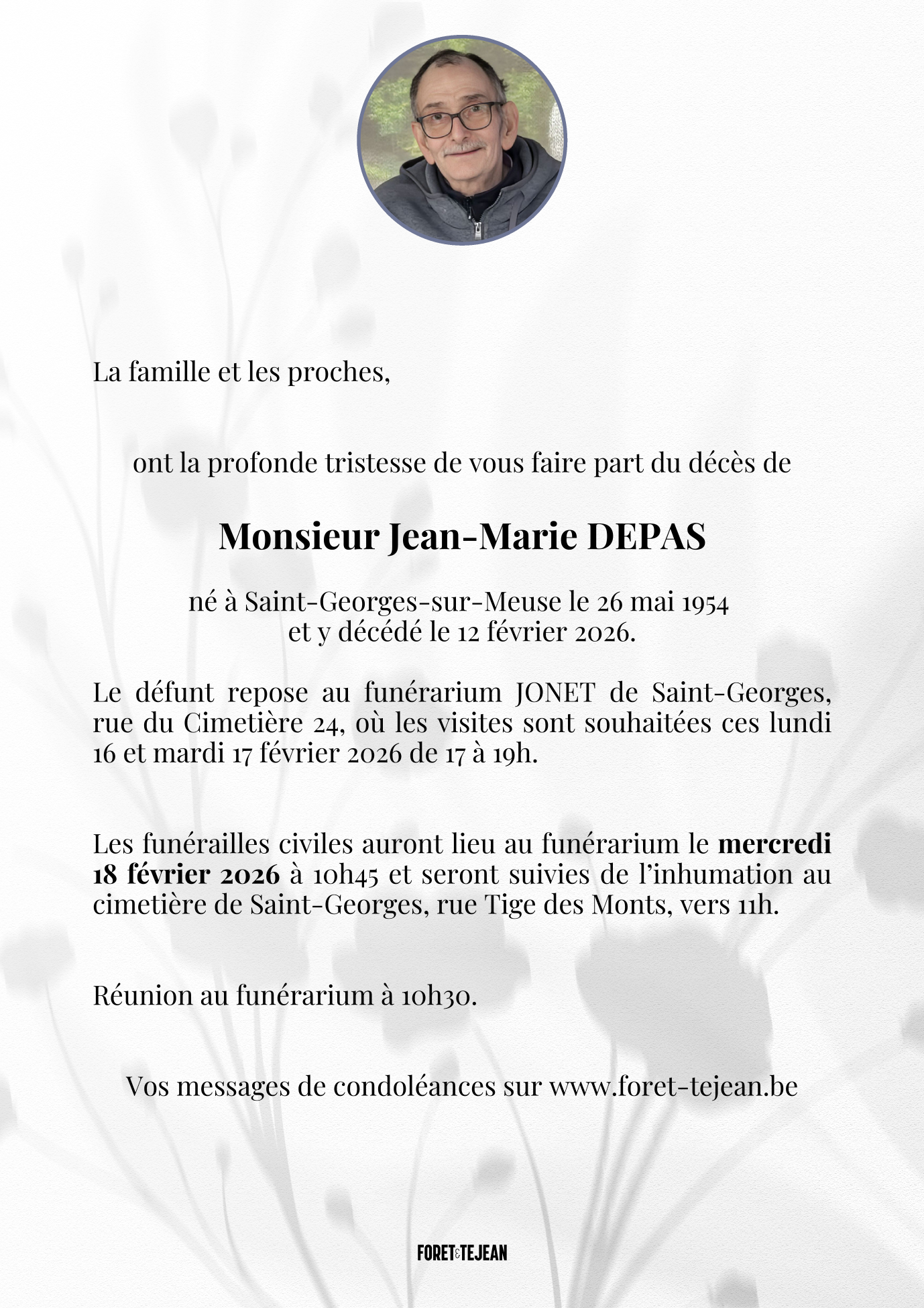 Décédé à Saint-Georges-sur-Meuse (4470) le jeudi 12 février 2026 à l'âge de 71 ans