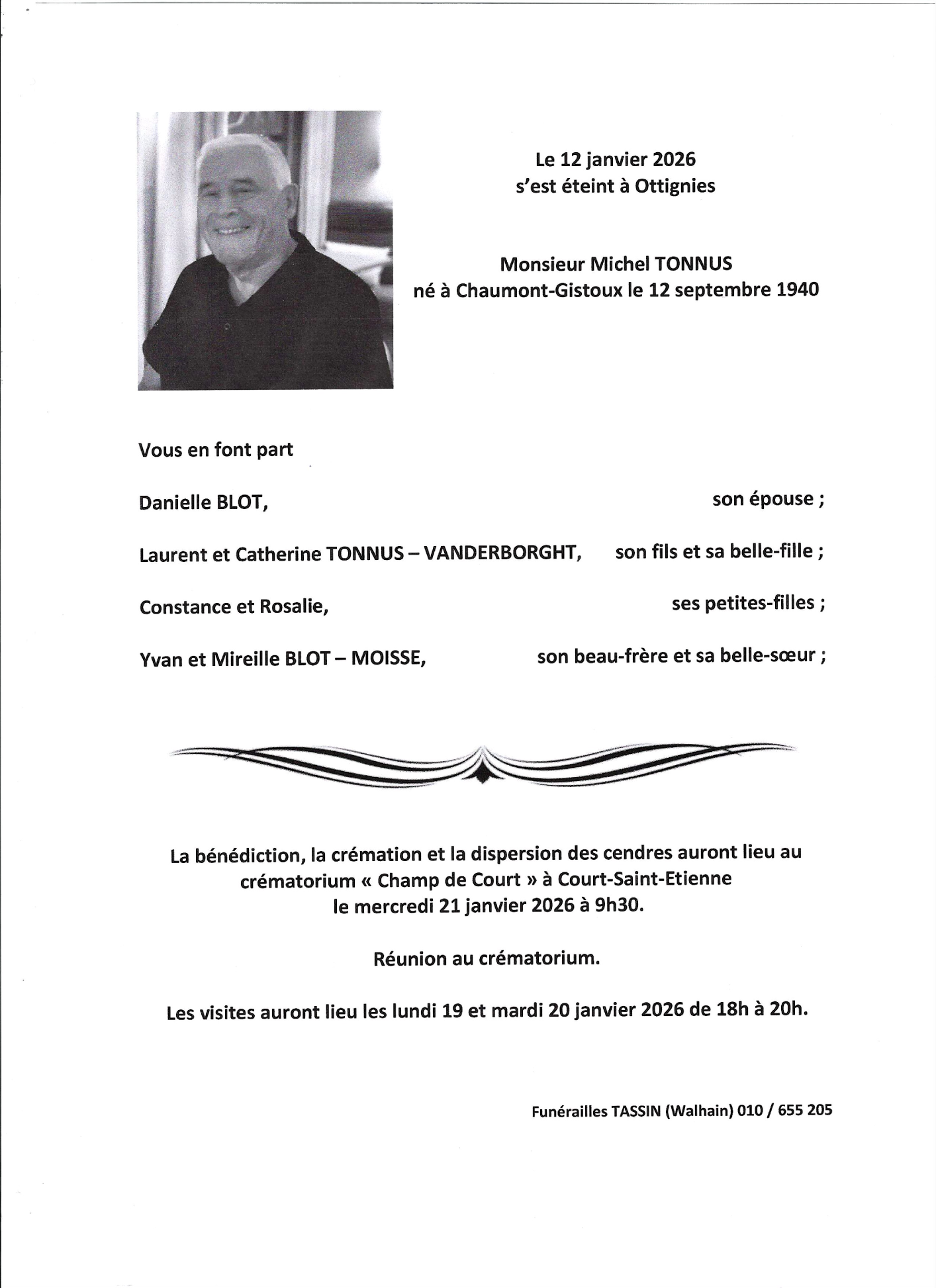 Décédé à Ottignies (1340) le lundi 12 janvier 2026 à l'âge de 85 ans