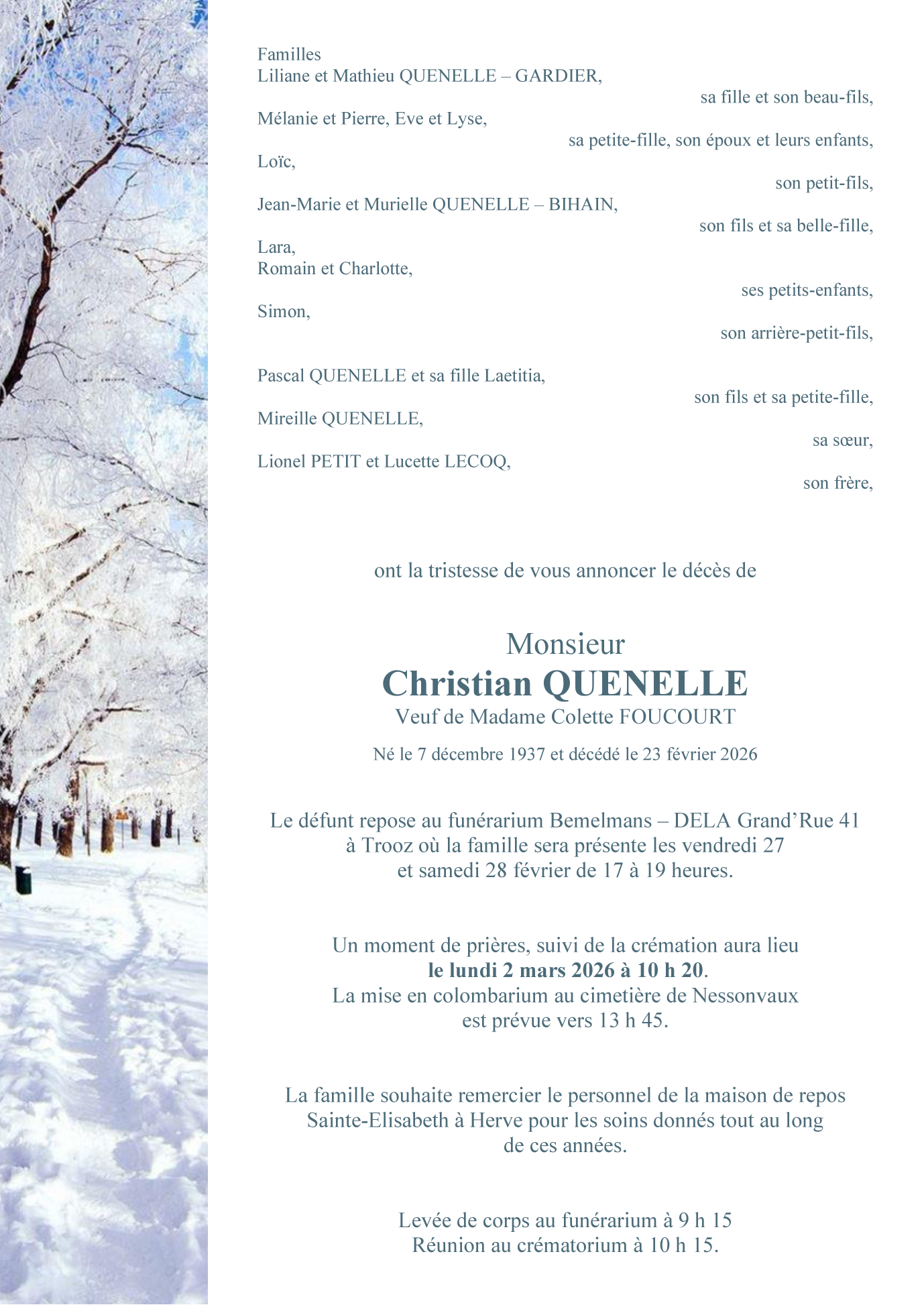 Fallecido en Herve (4650) el lunes, 23 de febrero de 2026 a la edad de 88 años