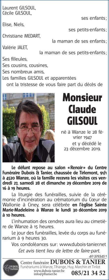 Died in Wanze (4520) on 23 December 2019 at the age of 72 years