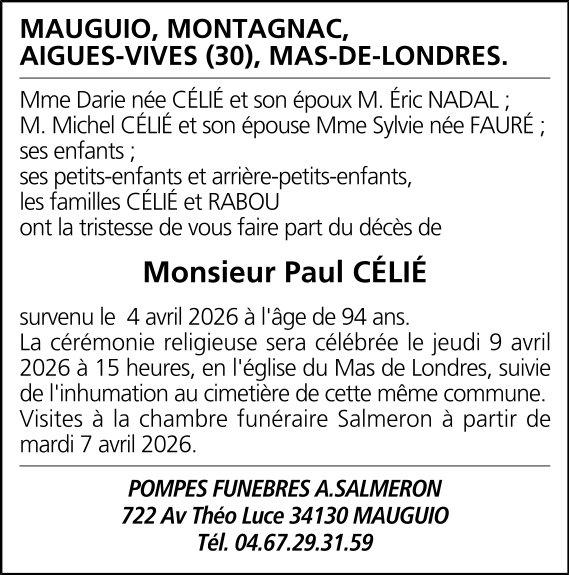 Décédé à Aigues-Vives (30670, France) le samedi 4 avril 2026 à l'âge de 94 ans