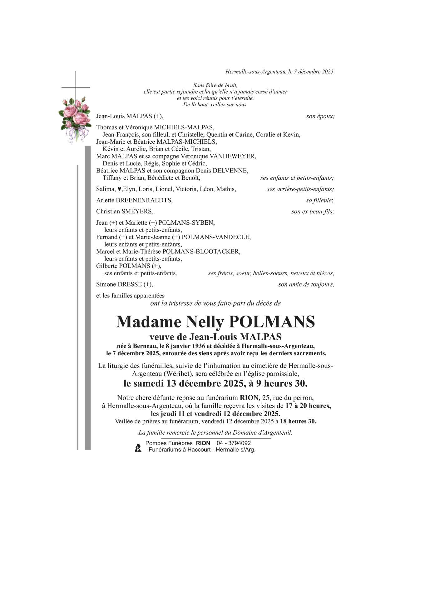 Overleden te Hermalle-sous-Argenteau (4681) op zondag 7 december 2025 op 89-jarige leeftijd