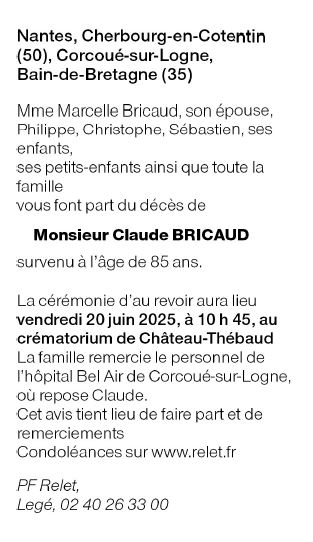 Décédé à Corcoué-sur-Logne (44650, France) le lundi 16 juin 2025 à l'âge de 85 ans