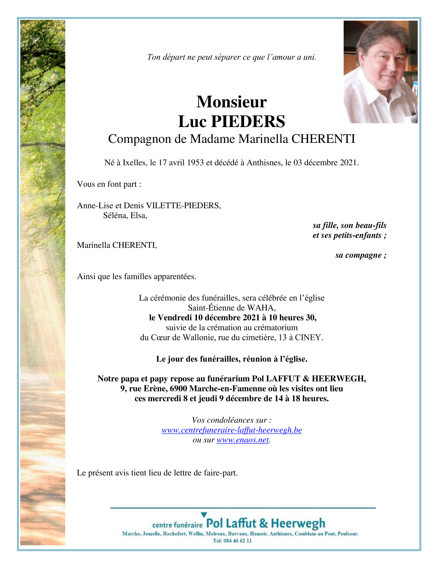 Overleden te Anthisnes (4160) op vrijdag 3 december 2021 op 68-jarige leeftijd