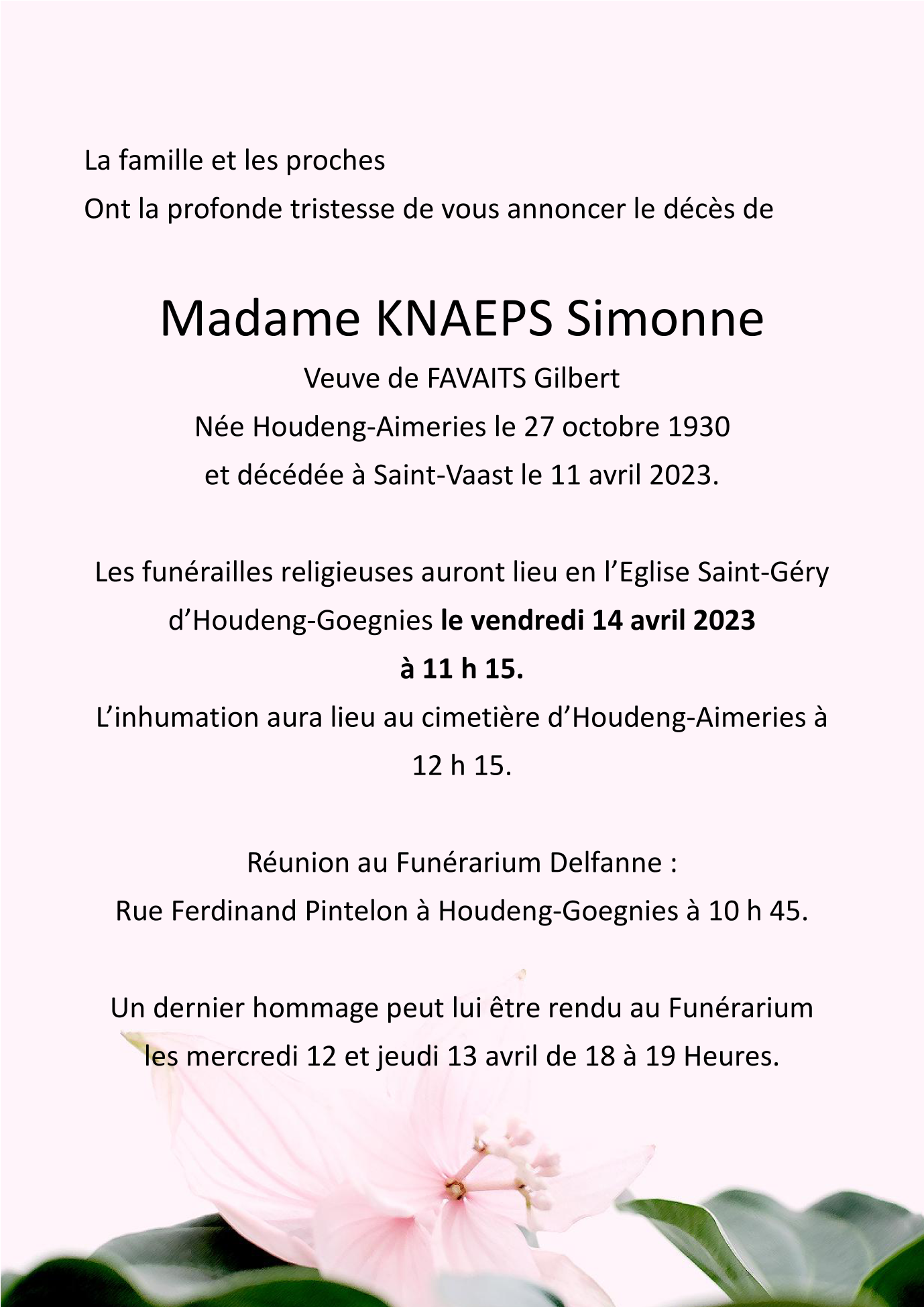 Née à Houdeng-Aimeries (7110) le lundi 27 octobre 1930