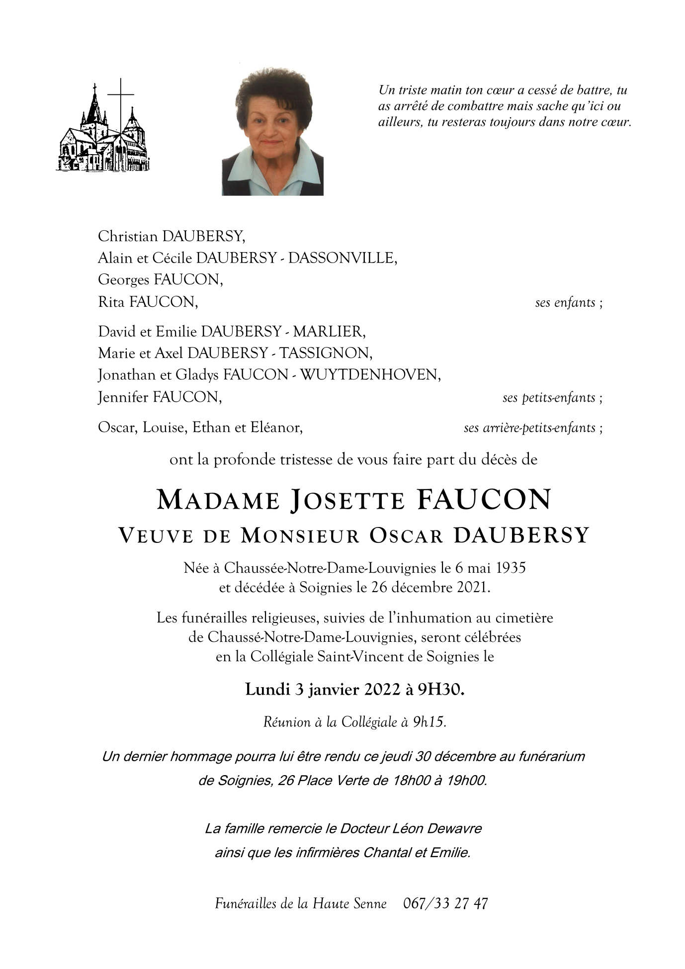 Overleden te Soignies (7060) op zondag 26 december 2021 op 86-jarige leeftijd