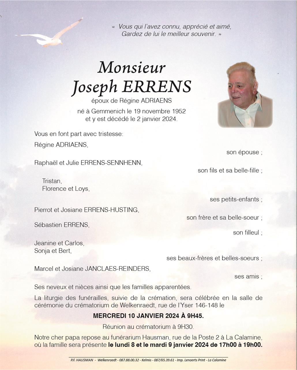 Décédé à Gemmenich (4851) le mardi 2 janvier 2024 à l'âge de 71 ans