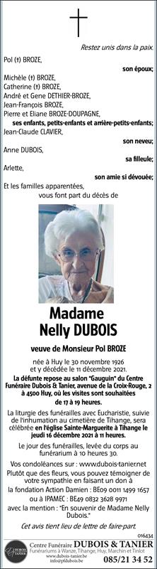 Fallecida en Huy (4500) el sábado, 11 de diciembre de 2021 a la edad de 95 años