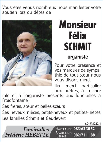 Décédé à Froidfontaine (5576) le jeudi 2 janvier 2020 à l'âge de 79 ans