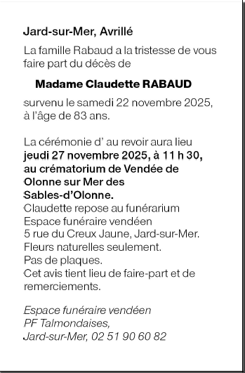 Died in Moutiers-les-Mauxfaits (85540, France) on 22 November 2025 at the age of 83 years