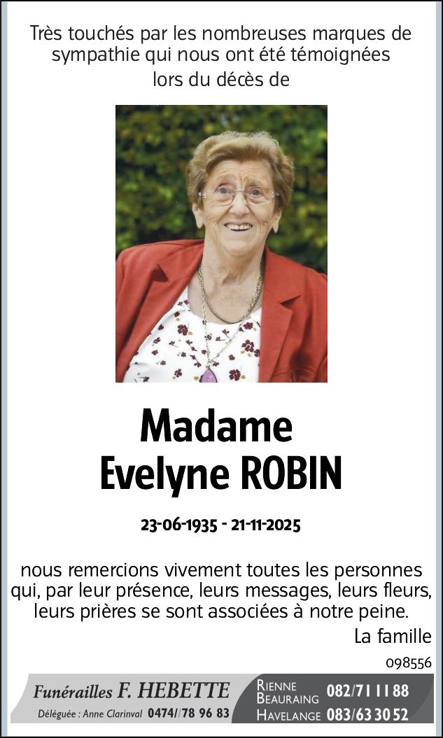 Décédée à Libramont (6800) le vendredi 21 novembre 2025 à l'âge de 90 ans