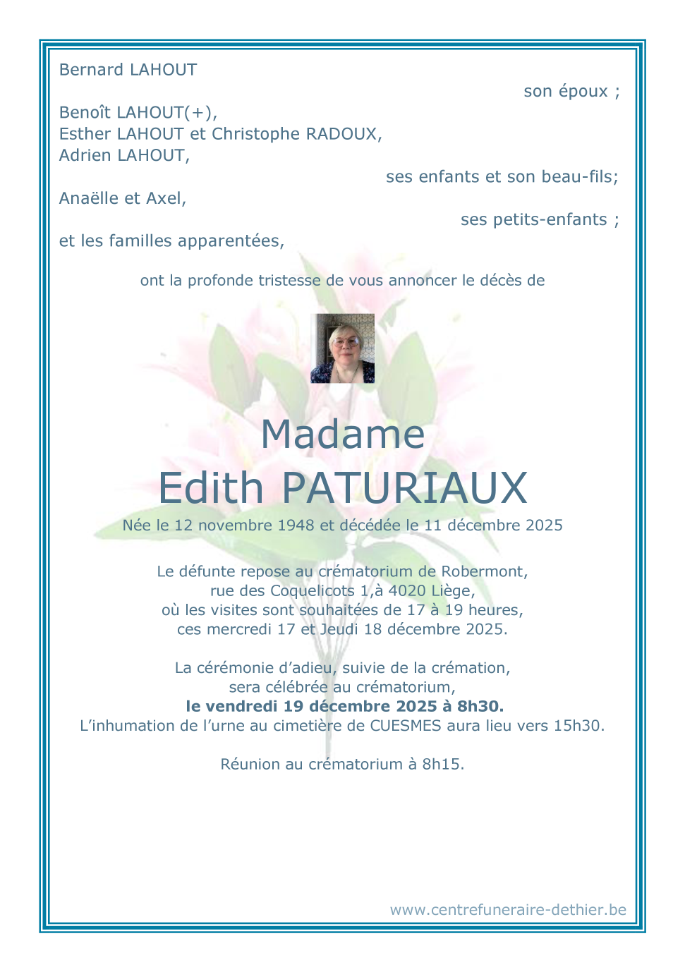 Madame Edith PATURIAUX