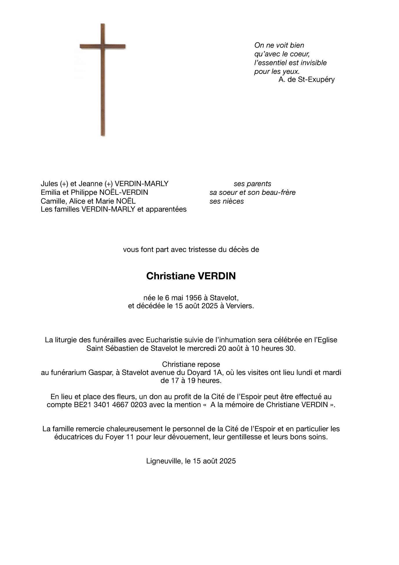 Overleden te Verviers (4800) op vrijdag 15 augustus 2025 op 69-jarige leeftijd