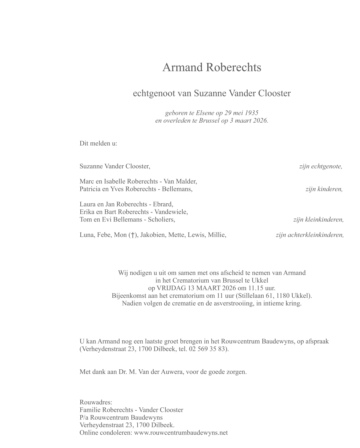 Esposo de Mevrouw Suzanne Vander Clooster