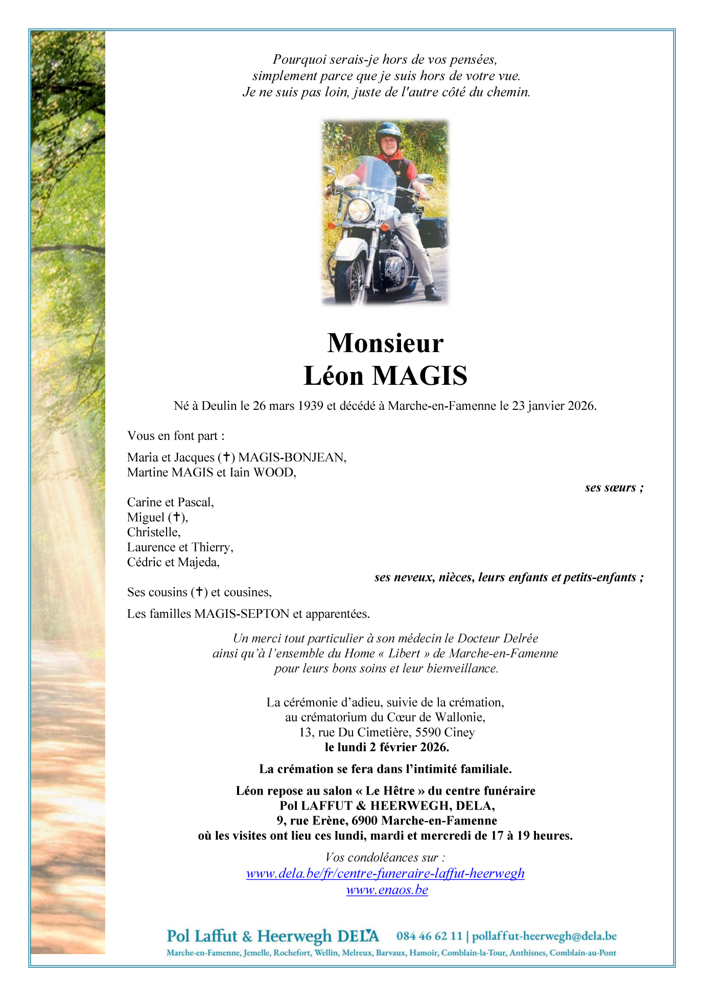 Overleden te Marche-en-Famenne (6900) op vrijdag 23 januari 2026 op 86-jarige leeftijd