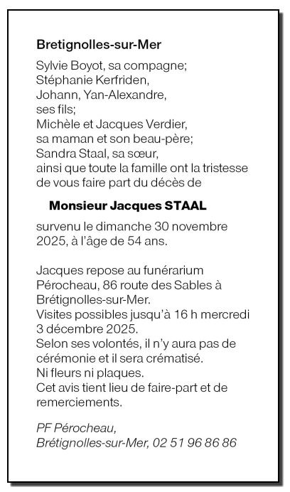 Décédé à L'Aiguillon-sur-Vie (85220, France) le dimanche 30 novembre 2025 à l'âge de 54 ans